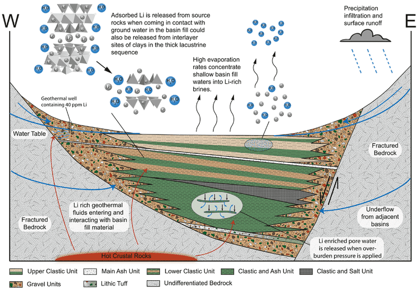 • Identifies key geological and hydrogeological characteristics supporting lithium brine potential, including basin geometry, aquifer horizons, and brine accumulation environments.