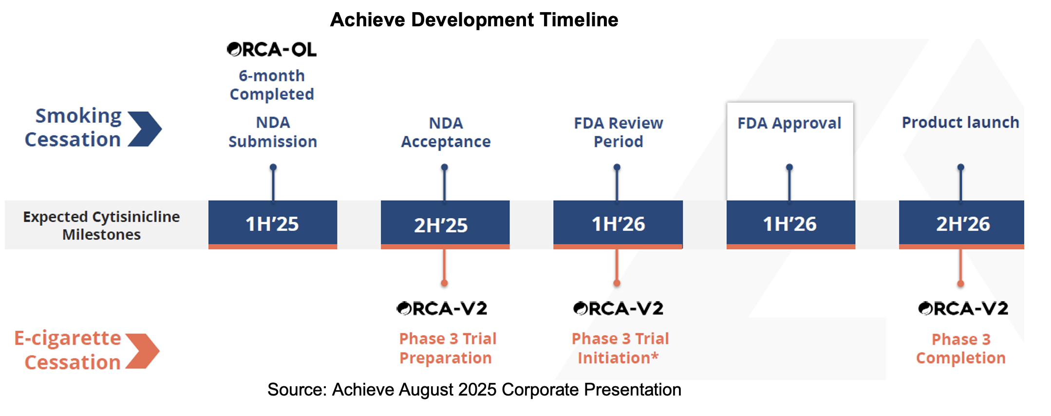 As of June 30th, 2025, cash and equivalents totaled $55.4 million. This compares to a $34.4 million balance held at the end of 2024. Achieve carries convertible debt of $9.9 million on the balance sheet which includes accrued interest. In July 2024, the company refinanced its debt agreement with Silicon Valley Bank (SVB), extending maturity until the end of 2027. Achieve is eligible to draw an additional $5 million from the facility following FDA acceptance of its NDA, which we expect in September. Cash used in operations during 2Q:25 was ($9.1) million versus ($4.9) million in the same prior year period. On the last day of the second quarter, Achieve closed a capital raise which generated net proceeds of $41.3 million. Following the end of the reporting period, on July 25th, 2025, the underwriters exercised their option to sell 1.4 million additional shares at $3.00. We estimate this generated just under $4 million in net proceeds that add to the June 30 cash balance.