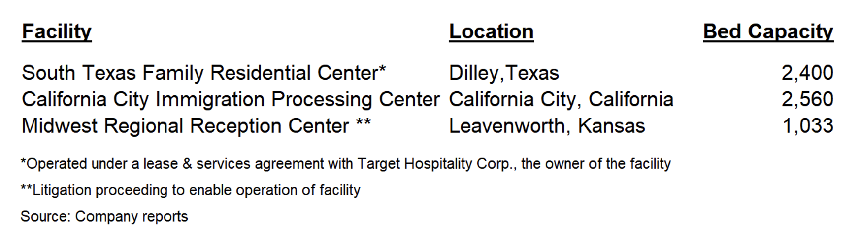 CXW’s expansion initiatives underscore CXW’s need for capacity, reflecting discussions with ICE, its largest government partner and, according to the New York Times, the federal government’s highest funded law enforcement agency. ICE is seeking to expand its nationwide capacity. While alternative solutions such as Alligator Alcatraz in Florida are being considered, CXW believes such solutions do not detract from it growing its ICE business and could even imply some potential opportunity to manage alternative solutions or facilities. The company has a long history of providing capacity and related services to ICE and other government partners. Reflecting the additional capacity required by ICE and potentially other government partners, we anticipate discussions to lead to new business and expect the company’s momentum to continue.