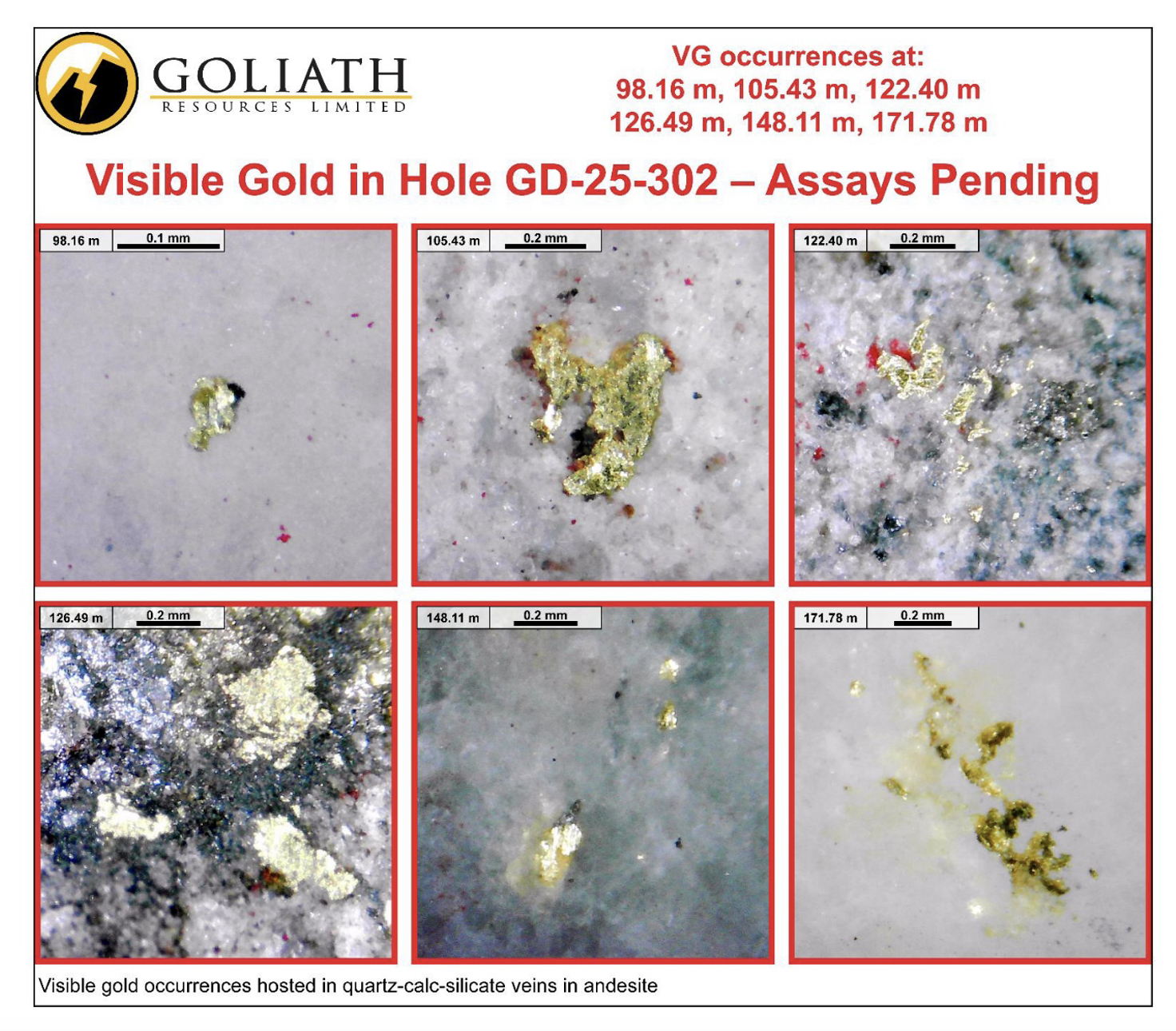 Early results from 2025 drilling showing visible gold in core, and indication of successes expected
