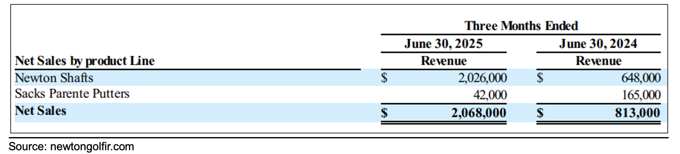 Newton Golf (NASDAQ:NWTG) revenues increased 154% to $2.1 million during the 2nd quarter of 2025, compared to $0.8 million in the prior year period. The increase was partially driven by the introduction of Newton Fast Motion shafts, which were launched on April 29, 2025. The Newton Fast Motion golf shaft has surged to become a giant success in just its first few months on the market. In May and June alone, 1,817 units generated over $696,000 in gross sales, and momentum only accelerated into the 3rd quarter with 2,211 units sold to date, producing more than $786,000 in revenue. This rapid adoption, which outpaced even the established Motion line, underscores the Fast Motion’s powerful market appeal, exceptional performance, and the strong demand from golfers seeking the next step in shaft innovation.