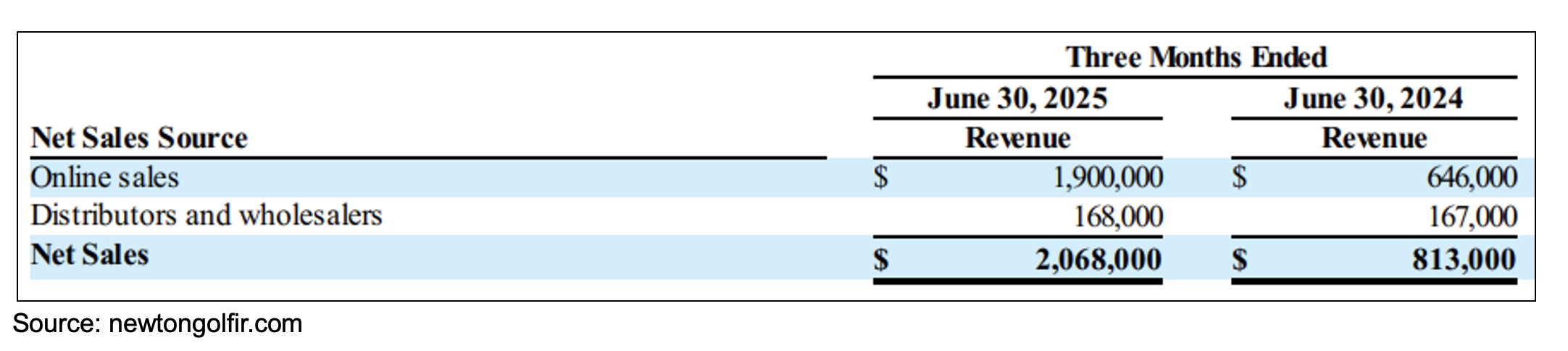 - Experienced significant growth in direct-to-consumer sales through NewtonGolfCo.com.