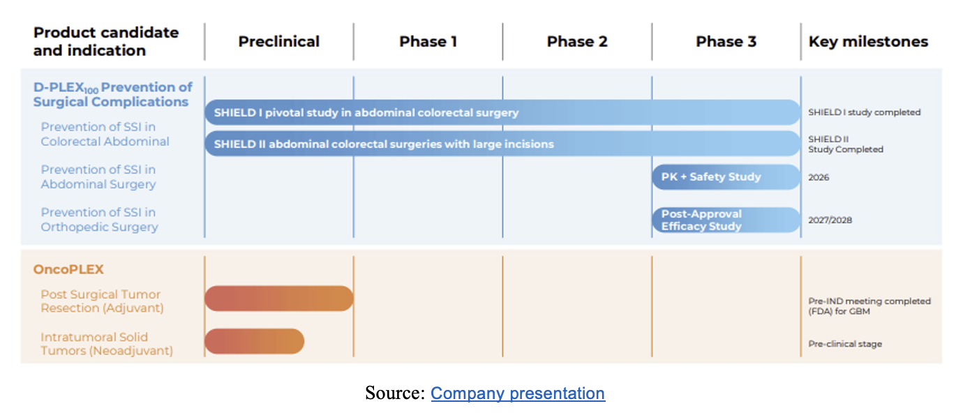 After completing enrollment of 800 patients in medical centers in the U.S., Europe, and Israel in the SHIELD II trial in March 2025, PolyPid reported top-line results last month. D-PLEX₁₀₀ successfully met the primary efficacy endpoint of the SHIELD II study, demonstrating statistically significant results (p<0.005) in 798 patients with large abdominal surgery incisions. Moreover, the SHIELD II trial included three key secondary endpoints and also demonstrated statistical significance in successfully meeting all critical secondary efficacy endpoints, including a 58% reduction in the rate of SSIs in patients treated with D-PLEX₁₀₀ compared to those treated with SoC (p<0.005).