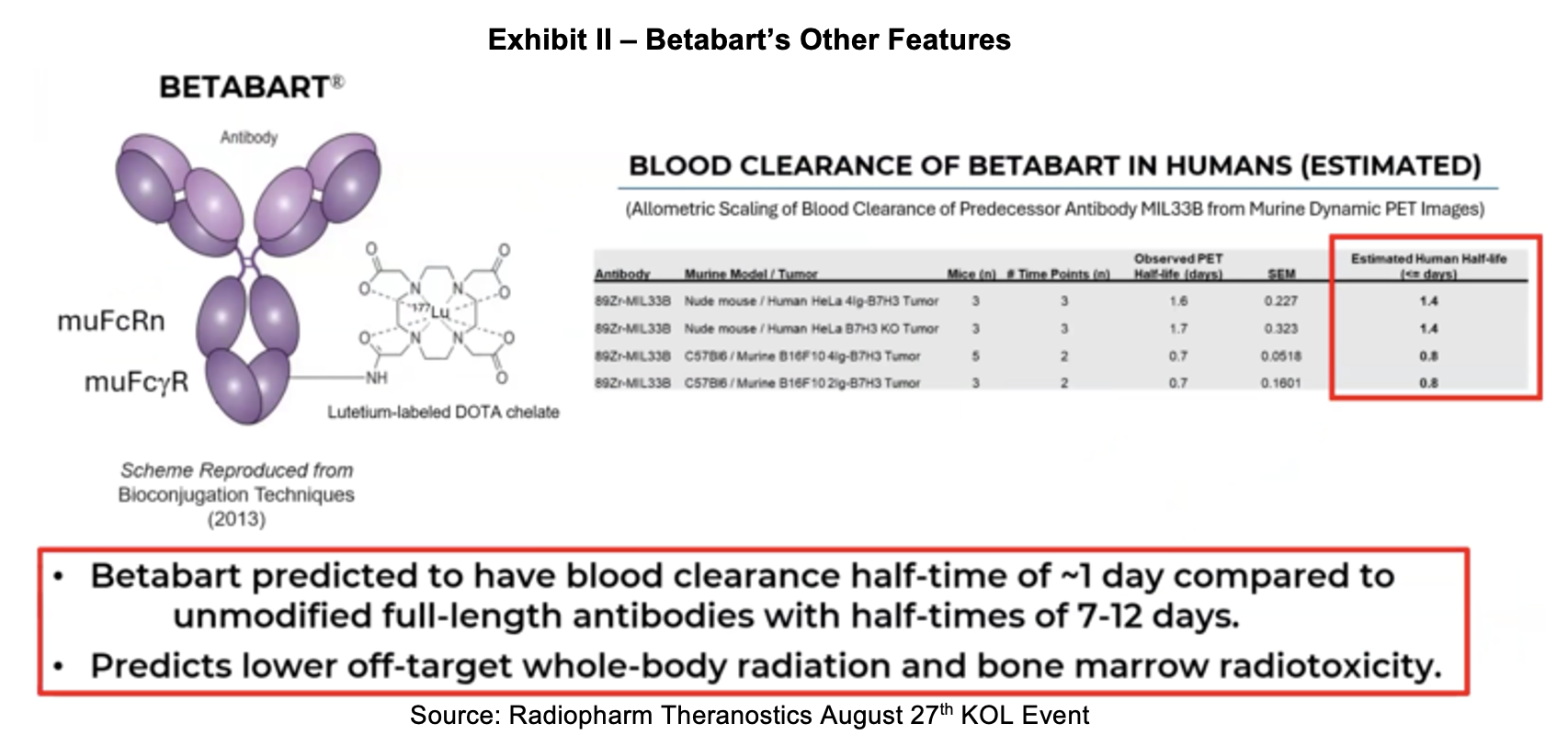 Further modifications of Betabart include the introduction of mutations into the FC domain of the antibody. This change will accelerate its clearance from circulation and decrease marrow binding where the B7-H3 receptors are present. These changes will reduce off-target radiation exposure as demonstrated in a mouse model.