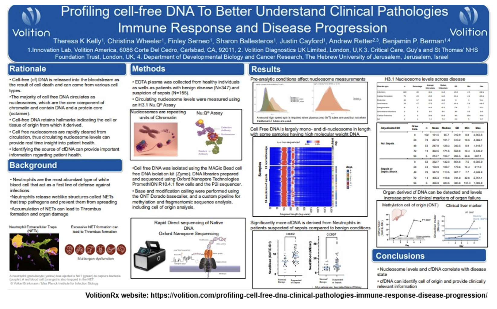 Nu.Q NETs – (poster – ISTH Congress – traumatic injury): A poster titled: “Profiling cell-free DNA To Better Understand Clinical Pathologies Immune Response and Disease Progression,” by Theresa K Kelly et al was presented at the ISTH (International Society on Thrombosis and Haemostasis) Congress between June 21 and 25, 2025 in Washington DC. The poster concludes that nucleosome levels and cfDNA correlate with disease state.